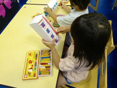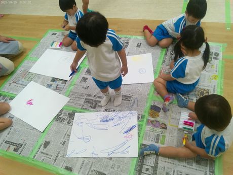 10月17日(金) 本日の給食 (写真は4歳児クラス) 麦ごはん、中華風オムレツ、野菜の胡麻和え、中華スープ、果物(柿) おやつ : 牛乳、秋の実りケーキ 2025年10月17日(金) 5歳児 ほし・そら組 今日はハロゥイン製作でジャックオーランタンのタペストリーを作りました。目・口の形は子どもたちが好きな形を考えて切りました。(10/15) 2025年10月16日(木) 3歳児 さくら組 今日は11月の壁面製作で電車を作りました。キャラクターをかいたり、ハートがたくさんだったりみんなそれぞれの電車にしてくれていました。 2025年10月15(水) 2歳児 ちゅうりっぷ組 運動会でひと回り大きくなったみんなは、ゆったり時間も過ごしています。 10月15日(水) 本日の給食 (写真は2歳児クラス) 根菜カレー、かつお節サラダ、果物(バナナ) おやつ : 牛乳、いちごジャムのケーキ 10月14日(火) 本日の給食 (写真は1歳児クラス) 麦ごはん、のり塩からあげ、海藻サラダ、中華スープ、果物(オレンジ) おやつ : 牛乳、てづくりピザ 2025年10月13日(月) 0歳児 つくし組 今日は手作りバックを持って秋探しのお散歩に行きました。黄色や赤色になった葉っぱを拾ったり、どんぐりをたくさん拾いました。 途中、お散歩帰りのちゅうりっぷ組さんに会い会い、どんぐりをたくさんもらって大喜びのつくし組さんでした。(10/8) 2025年10月10日(金) 5歳児 ほし・そら組 9月から始まった運動会カレンダー今日でゴールまで来ました。いよいよ、明日本番!これまでの練習の成果をみんな発揮できることを祈っています。 10月9日(木) 本日の給食 (写真は4.5歳児クラス) 麦ごはん、魚のごま味噌焼き、切干大根の甘酢和え、すまし汁 おやつ : 牛乳、豆腐のブラウニー 10月8日(水) 本日の給食 (写真は3歳児クラス) 麦ごはん、厚揚げのケチャップ煮、ツナサラダ、野菜スープ おやつ : 牛乳、メープル風味のバナナケーキ 2025年10月8日(水) 2歳児 ちゅうりっぷ組 きょうは運動会練習はお休み。公園へ行って全力で遊びました。(10/8) 10月7日(火) 本日の給食 (写真は4.5歳児クラス) ぎょうざ丼、わかめの中華風サラダ、中華スープ、果物(柿) おやつ : 牛乳、カルピスケーキ 2025年10月7日(火) 1歳児 たんぽぽ組 新聞あそびの様子です。すっかり慣れて遊びにも自身の力で積極的に遊んでいる子どもたちです。(10/6) 10月6日(月) 本日の給食 (写真は1歳児クラス) 麦ごはん、具だくさんしょうが焼き、キャベツのごまじゃこサラダ、すまし汁 おやつ : 牛乳、お月見スイートポテト 2025年10月6日(月) 0歳児 つくし組 みんなでおままごとで遊びました。スプーンを持って食べる真似をしたりお友だちと、コップを合わせて「かんぱーい!」をしたり・・・それぞれ上手に遊んでいました。(10/1) 2025年10月3日(金) 5歳児 ほし・そら組 運動家の衣装が完成しました。女の子はリボン、男の子はネクタイの柄になっています。うしろは星と雲のデザインです。(9/29) 10月2日(木) 本日の給食 (写真は4歳児クラス) 麦ごはん、スパニッシュオムレツ、キャベツとコーンのサラダ、野菜スープ おやつ : 牛乳、マシュマロおこし 2025年10月2日(木) 3歳児 さくら組 今日はおやつの後にみんなでマット遊びをしました。いつも運動会の練習を頑張っているので、少し気分転換になれば良いなと思います。 10月1日(水) 本日の給食 (写真は4.5歳児クラス) プルコギ丼、もやしのごま和え、中華スープ、果物(バナナ) おやつ : 牛乳、アメリカンドッグ風パン 2025年10月1日(水) 2歳児 ちゅうりっぷ組 運動会の練習が続きましたので、今日は気分転換で、みんなでお絵かきをしました。(9/24) 9月30日(火) 本日の給食 (写真は3歳児クラス) けんちんうどん、野菜の磯和え、果物(梨) おやつ : 牛乳、パイナップルケーキ 2025年9月30日(火) 1歳児 たんぽぽ組 安治川口駅の踏切に行って電車を見に行きました。踏切の音に大喜びのたんぽぽ組の子どもたちでした。(9/30) 9月29日(月) 本日の給食 (写真は1歳児クラス) 麦ごはん、厚揚げのそぼろあんかけ、大根サラダ、すまし汁 おやつ : 牛乳、ひじきごはん 2025年9月29日(月) 0歳児 つくし組 今日は久しぶりにシーポートへお散歩に行きました。海を眺めたりたくさん歩き回ったりと楽しんでいた子どもたちです。(9/26) 9月27日(土) 本日の給食 (写真は3歳児クラス) 肉うどん、野菜の磯和え、果物(バナナ) おやつ : 牛乳、チーズ入りいももち 9月26日(金) 本日の給食 (写真は2歳児クラス) 麦ごはん、さばのカレー焼き、切り干し大根のかつお節サラダ、すまし汁 おやつ : 牛乳、さつまいもご飯 2025年9月26日(金) 5歳児 ほし・そら組 秋祭りをしました。お客さん、お店屋さんともにとっても楽しんでいた子どもたちです。(秋祭りようすはホームページ「園児のようす」で紹介しています) 9月25日(木) 本日の給食 (写真は2歳児クラス) ゆかりご飯、照り焼きハンバーグ、ひじきのサラダ、野菜スープ、果物(パイン) おやつ : 牛乳、マフィン 2025年9月25日(木) 3歳児 さくら組 今日はお米研ぎをしました。あまり見たことのない生のお米にみんな「かたい!」