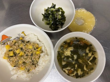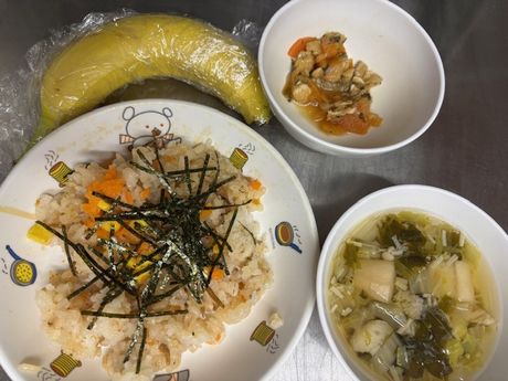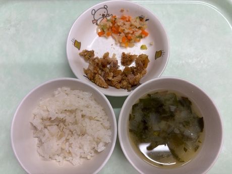 12月12日(金) 本日の給食 (写真は3歳児クラス) ぎょうざ丼、わかめの中華風サラダ、かきたま汁、果物(パイン缶) おやつ : 牛乳、ツナマヨパン 12月11日(木) 本日の給食 (写真は4歳児クラス) 麦ごはん、筑前煮、野菜の塩昆布和え、みそ汁 おやつ : 牛乳、マシュマロおこし 2025年12月11日(木) 3歳児 さくら組 今回はシチューの紙芝居を読んでもらった後、野菜の模写を行いました。みんなじっくり野菜を観察して絵をかいていました。(12/8)(この活動のようすは動画でも紹介しています) 12月10日(水) 本日の給食 (写真は2歳児クラス) ちらし寿司、かぶと油揚げの炒め煮、すまし汁、果物(バナナ) おやつ : 牛乳、みそポテト 2025年12月10日(水) 2歳児 ちゅうりっぷ組 クリスマス製作でサンタさんを作りました。好きなように帽子をかぶせて可愛いサンタができました。(12/4) 12月8日(月) 本日の給食 (写真は0歳児クラス) 麦ごはん、のり塩唐揚げ、切干大根の甘酢和え、みそ汁 おやつ : 牛乳、りんごケーキ 2025年12月8日(月) 0歳児 つくし組 お部屋の中でマット遊びをしました。高さのあるマットから降りる時はちゃんと足から降りたり、お友だちとぶつからないように上手くよけて遊んだり、体の使い方がどんどん上手になっているつくし組さんです。(12/3) 12月6日(土) 本日の給食 (写真は2歳児クラス) プルコギ丼、白菜のさっぱりサラダ、中華スープ、果物(みかん) おやつ : 牛乳、黒糖サーターアンダギー 12月5日(金) 本日の給食 (写真は3歳児クラス) 麦ごはん、魚のオーロラソースがけ、コーンサラダ、ミネストローネ おやつ : 牛乳、揚げパン 2025年12月5日(金) 5歳児 ほし・そら組 今日からおやつの時におにぎりが出ると、自分たちで握って食べる事になりました。自分たちで握ったおにぎりは美味しくてパクパク食べていました。(12/2) 2025年12月4日(木) 3歳児 さくら組 今日は室内に飾るクリスマスツリーの色付けをみんなでしました。手を緑にそめながら頑張ってくれました。(11/28) 12月3日(水) 本日の給食 (写真は4.5歳児クラス) 麦ごはん、肉豆腐、きゅうりのごま和え、すまし汁、果物(パイン) おやつ : 牛乳、マフィン 12月2日(火) 本日の給食 (写真は3歳児クラス) きつねうどん、野菜の塩昆布和え、果物(バナナ) おやつ : 牛乳、しらすのおにぎり 2025年12月2日(火) 1歳児 たんぽぽ組 ボール遊びをしました。ポリ袋を使ってすべり台のようにしてボールを転がして楽しんでいました。(11/25) 12月1日(月) 本日の給食 (写真は4.5歳児クラス) 麦ごはん、豚肉と大根のいため煮、野菜のおかか和え、果物(オレンジ) おやつ : 牛乳、栗チョコケーキ 2025年12月1日(月) 0歳児 つくし組 昨日みんなで拾った落ち葉ではりねずみさんを作りました。黄色や茶色いろんな大きさの葉っぱが集まりました。製作中も落ち着いて座って できるようになり成長を感じます。(11/27) 11月28日(金) 本日の給食 (写真は2歳児クラス) 麦ごはん、魚の胡麻味噌焼き、和風サラダ、すまし汁、果物(パイン缶) おやつ : 牛乳、マシュマロおこし 2025年11月28日(金) 5歳児 ほし・そら組 12月の室内製作で版画をしました。初めての技法で「どうなるんだろう?」と不思議そうでしたが、画用紙に作ったのがうつると嬉しそうにしていた子どもたちです。(11/26) 11月27日(木) 本日の給食 (写真は1歳児クラス) ロールパン、ハンバーグ、マカロニサラダ、パンプキンシチュー、果物(バナナ) おやつ : 牛乳、いちごジャムケーキ 2025年11月27日(木) 3歳児 さくら組 今回はさくら組の皆に手伝ってもらい、1月の玄関壁面製作で飾る馬のはりぼてを作りました。ここから色付けや飾り付けをみんなでしていきたいと思います。(11/20) 2025年11月26日(水) 2歳児 ちゅうりっぷ組 新聞紙でドレスや魔法の杖をつくりました。いっぱいつくって変身です。(11/25) 2025年11月25日(火) 1歳児 たんぽぽ組 今日はボール遊びをしました。服にボールを詰め込むのが面白かったようで、お腹や背中にたくさん入れてました。(11/18) 11月21日(金) 本日の給食 (写真は4.5歳児クラス) 麦ごはん、さばのおろし煮、小松菜のしらす和え、けんちん汁 おやつ : 牛乳、手作りピザ 11月20日(木) 本日の給食 (写真は3歳児クラス) 麦ごはん、カレー風味の肉じゃが、白菜のツナサラダ、みそ汁 おやつ : 牛乳、アメリカンドッグ風パン 11月19日(水) 本日の給食 (写真は4.5歳児クラス) 麦ごはん、鶏ごぼう、野菜のおかか和え、豚汁、果物(オレンジ) おやつ : 牛乳、揚げパン 2025年11月19日(水) 2歳児 ちゅうりっぷ組 壁面製作でクリスマスツリーを作りました。しっかり話を聞いて上手に糊を使い、作ることができました。(11/17) 11月18日(火) 本日の給食 (写真は2歳児クラス) 麦ごはん、厚揚げのケチャップ煮、ツナサラダ、野菜スープ おやつ : 牛乳、さつま芋おにぎり 2025年11月18日(火) 1歳児 たんぽぽ組 子ども同士の遊びもどんどん上手になってきたたんぽぽ組のお友だちブロック遊びがすごく大好きです。(11/11) 11月17日(月) 本日の給食 (写真は1歳児クラス) プルコギ丼、白菜のさ